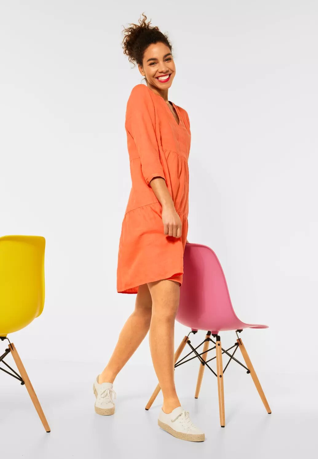 Voľné šaty od Street One sú charakteristické svojou vzušnousťou a ľahkosťou. Rozrezaný okrúhly výstrih mierne odhalí ženský dekolt. Prezentované sú v tunikovom štýle v jednoliatej farbe a voľnom strihu.