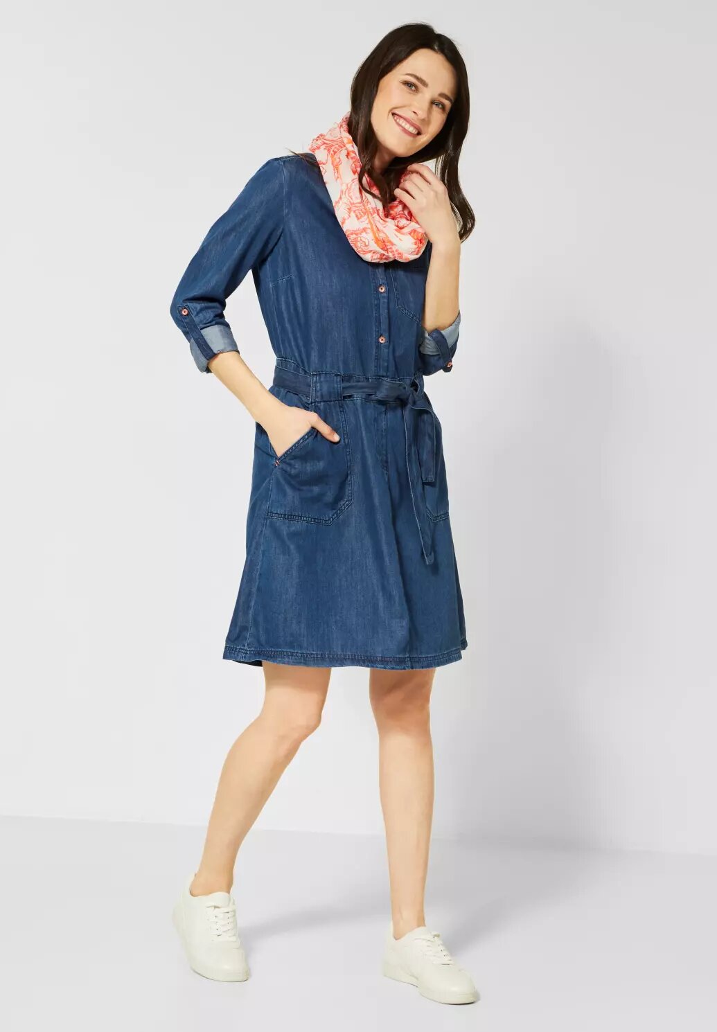 Rifľové šaty s dĺžkou po kolená sú jemné a príjemné na pokožke vďaka zmesi materiálov bavlna a lyocell.