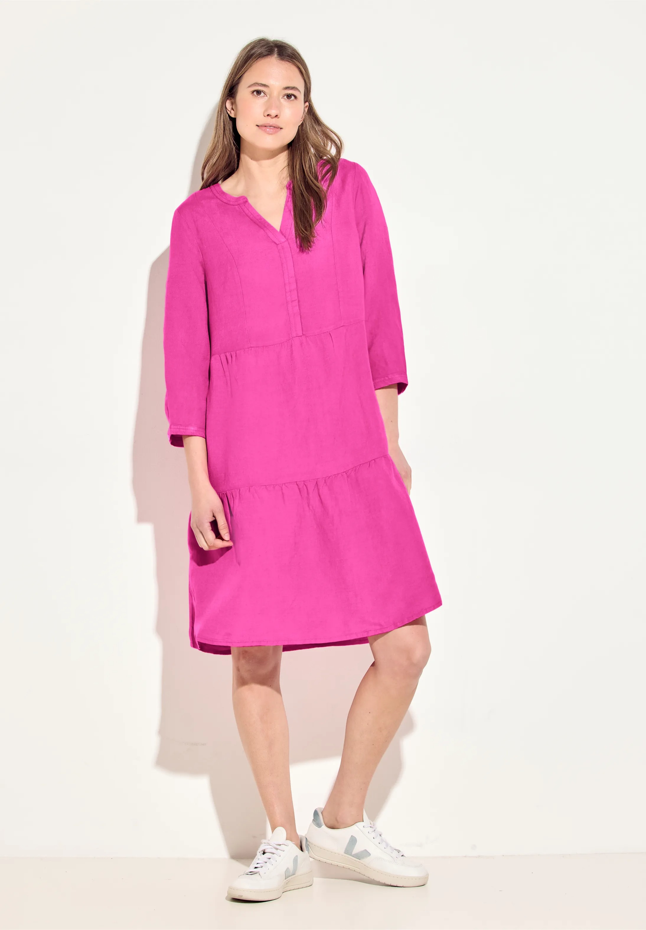 Tunikové šaty po kolená z jemnej zmesi ľanu a viskózy od CECIL sú nadčasovým a pohodlným kúskom oblečenia pre ženy. S 3/4 rukávmi zdobenými gombíkom a rozparkom na krku ponúka elegantnú siluetu.