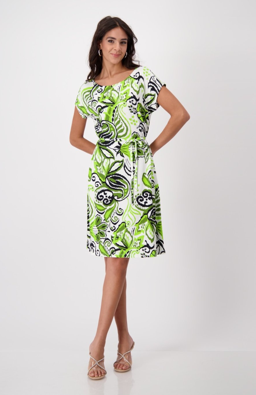 Tieto krásne šaty s paisley vzorom sú mierne vypasované a majú krátke raglánové rukávy.