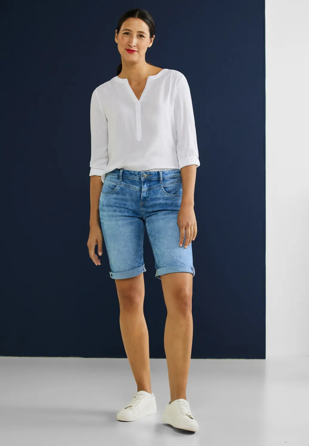 Dámske džínsové bermudy Style Jane casual fit od Street One majú klasické modré pranie.