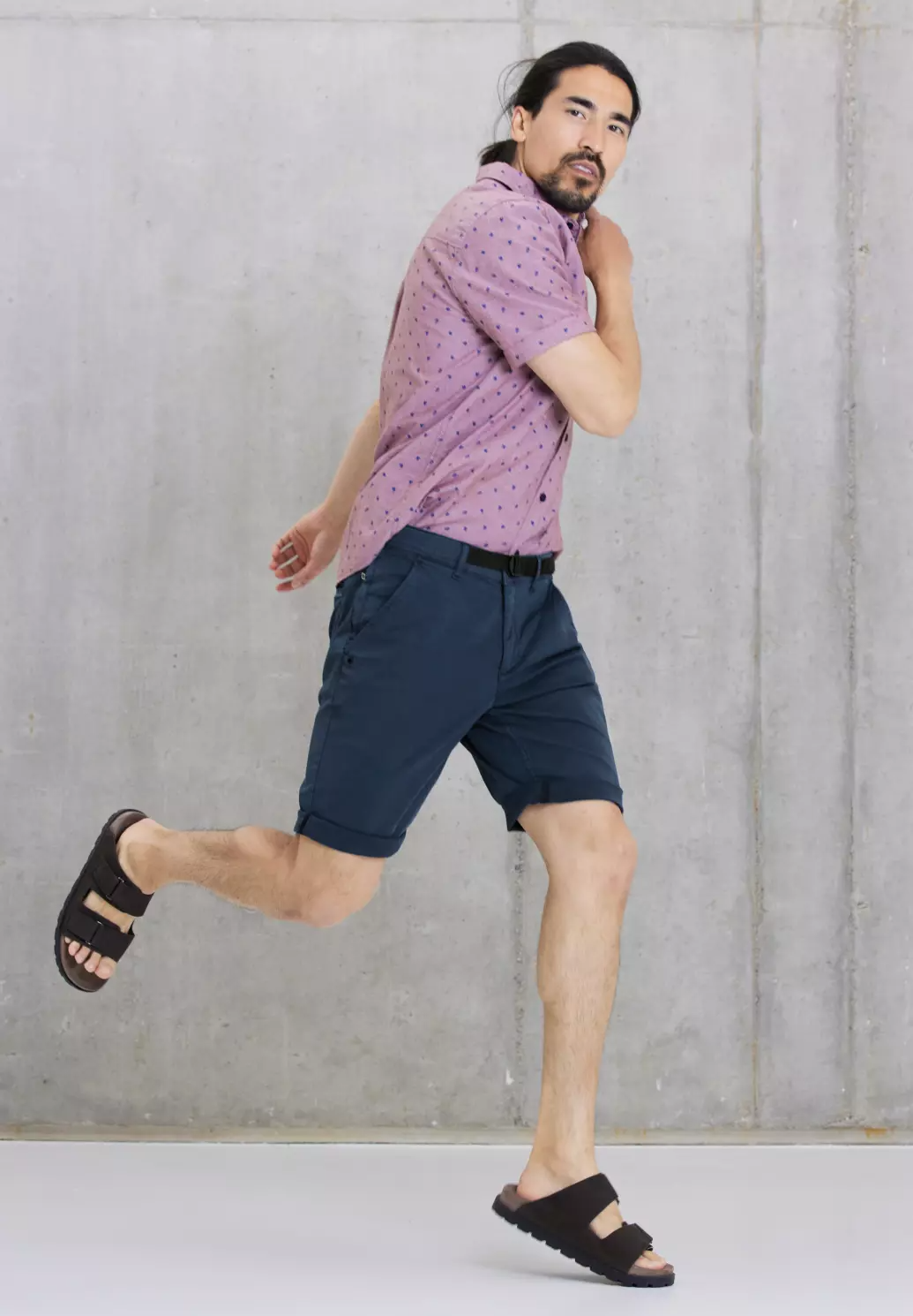 Verný spoločník! S týmito pánskymi šortkami Street One MEN budete vždy dobre oblečení v kancelárii alebo vo voľnom čase. Šortky v chino štýle a regular fit strihu sú dobrým spoločníkom ku košeliam alebo košeliam. Nechýbajú ani praktické detaily ako vrecká a zips s gombíkom. Zaväzovací opasok a pogumovaný štítok na chrbte dodávajú šortkám ležérny nádych.