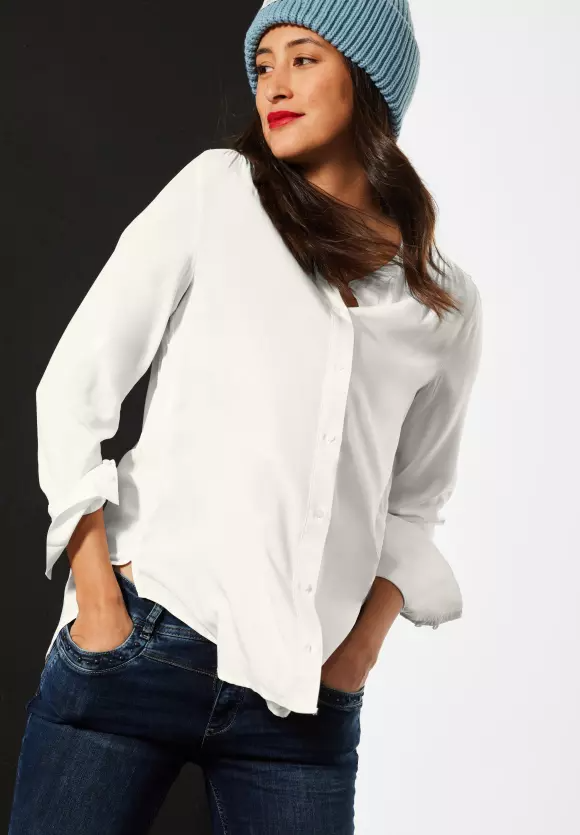 Kdekoľvek pôjdeš! Dámska dámska blúzka v dlhom štýle Street One. Jednofarebná farba, súvislá gombíková léga a stojatý golier vytvárajú klasické akcenty v kancelárii alebo každodennom živote. V jemnej viskóze je vzdušná a ľahká na nosenie a krásne ležérne padne.