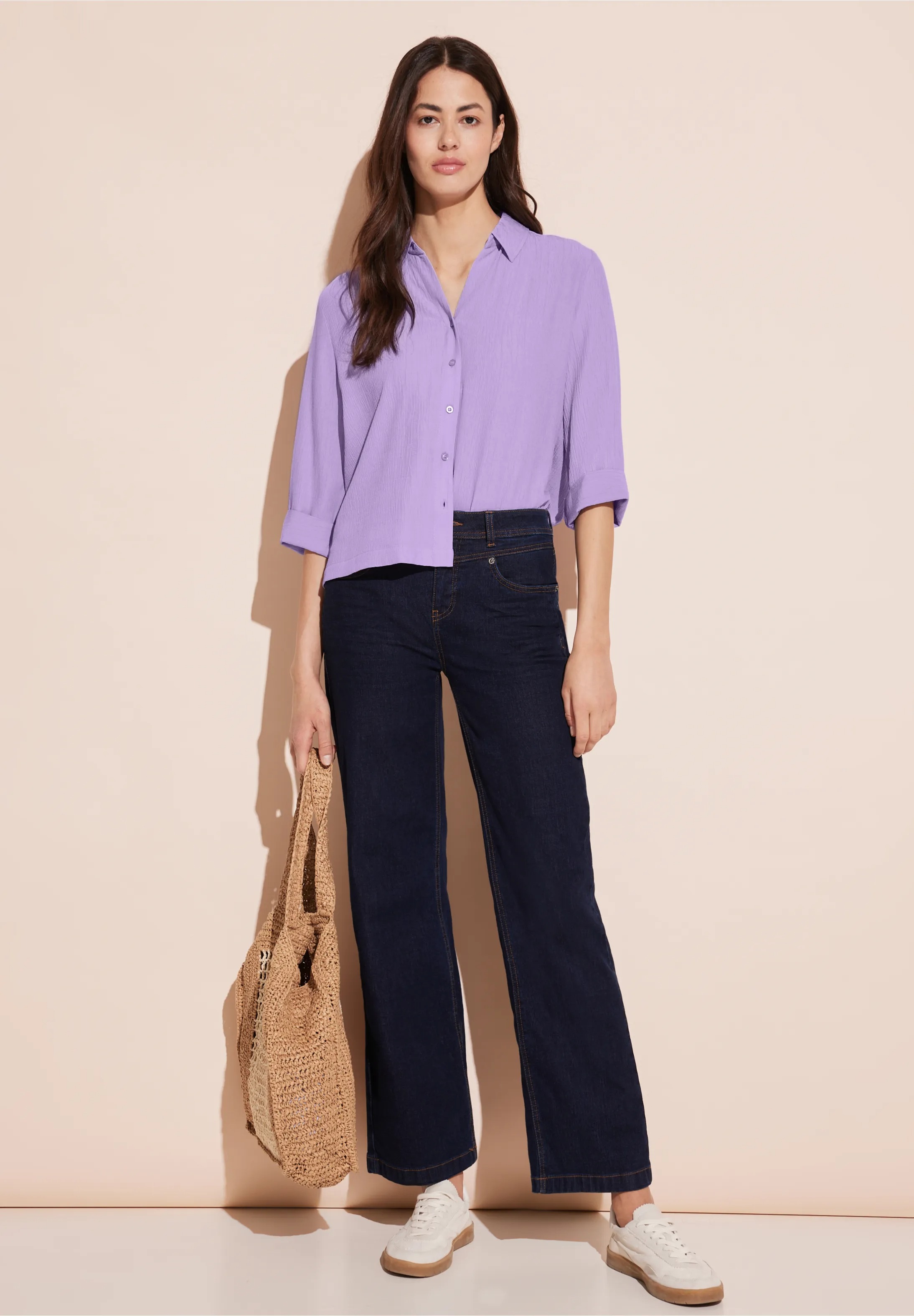 Dámska krepová blúzka Street One je elegantná košeľová blúzka s klasickým golierom a gombíkovou légou.