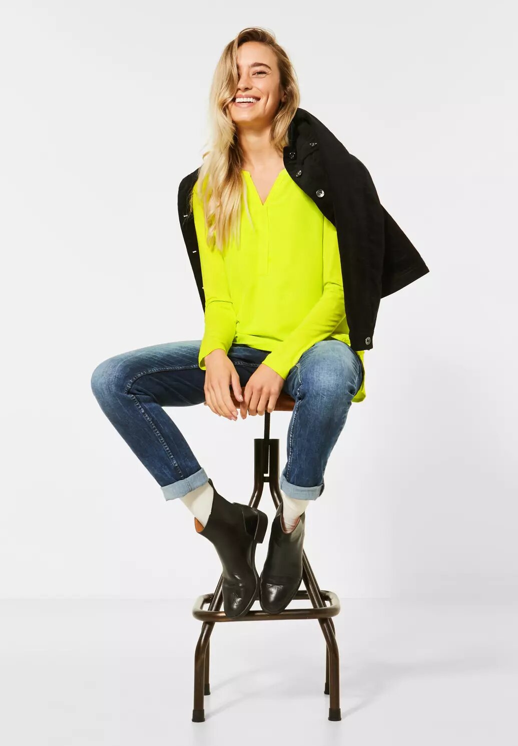 Blúzka značky CECIL inšpiruje svojou jednofarebnou farbou a dvojvrstvovým vzhľadom. Vonkajšia tkanina je ľahká a vzdušná a podšívka je pohodlná na nosenie. Vďaka štrbinovému okrúhlemu výstrihu je zdôraznená ženskosť.