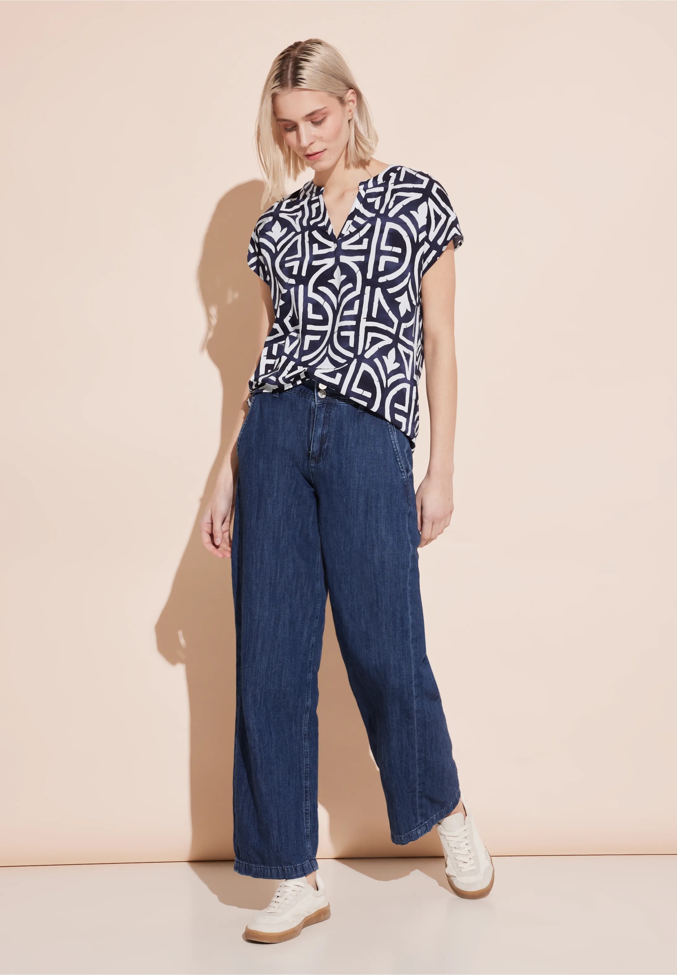 Dámska blúzka s potlačou Street One má rozparkovaný výstrih a príjemne mäkkú viskózovú kvalitu.