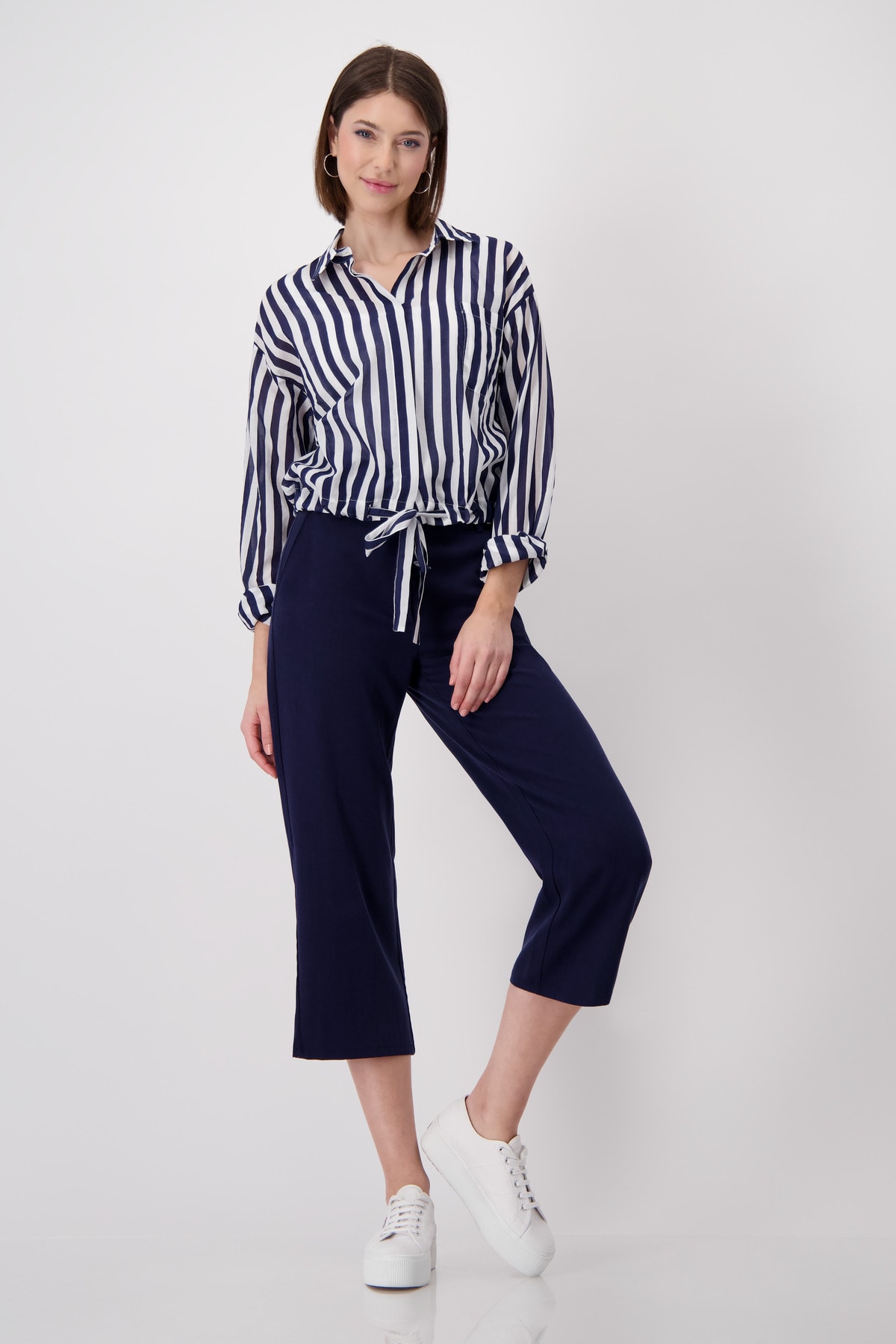 Pruhovaná košeľová blúzka s dlhými rukávmi, manžetami a šnurovaním na spodnom okraji.