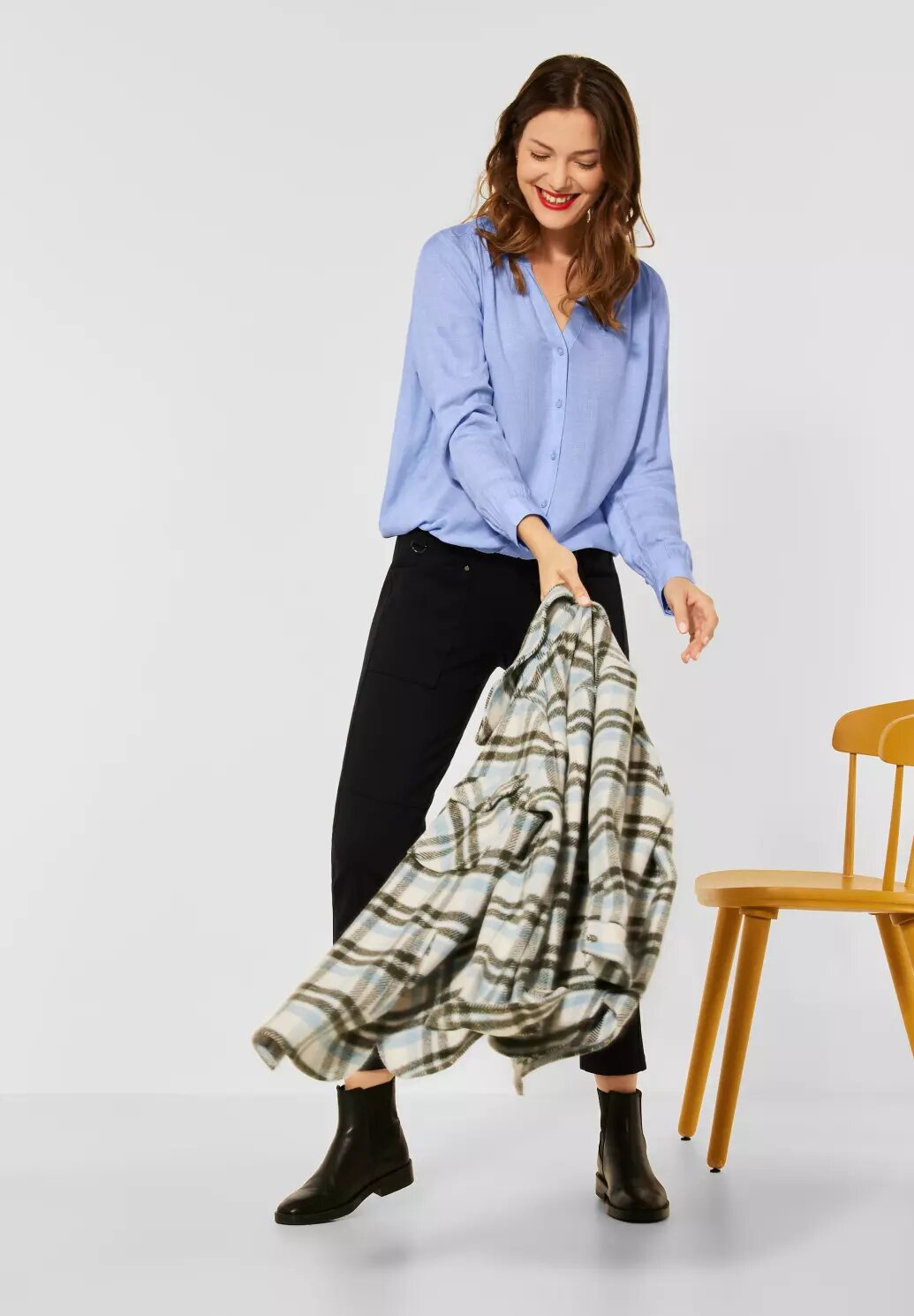 Voľná blúzka z Street One, ktorá bude vždy vyzerať dobre. Nadčasový kúsok, ktorý musí mať každá vo svojom šatníku. Pútač pozornosti tvorí hlavne štrbinový výstrih do V s gombíkovou légou. Jeho ležérny strih sa ukazuje v gumičke v leme. Mäkká viskóza je príjemná a ľahká na nosenie.