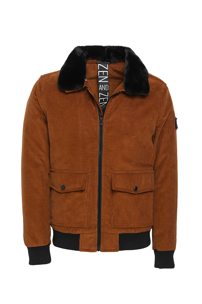 Zimná menčestrová bunda s odnímateľným kožušinovým golierom