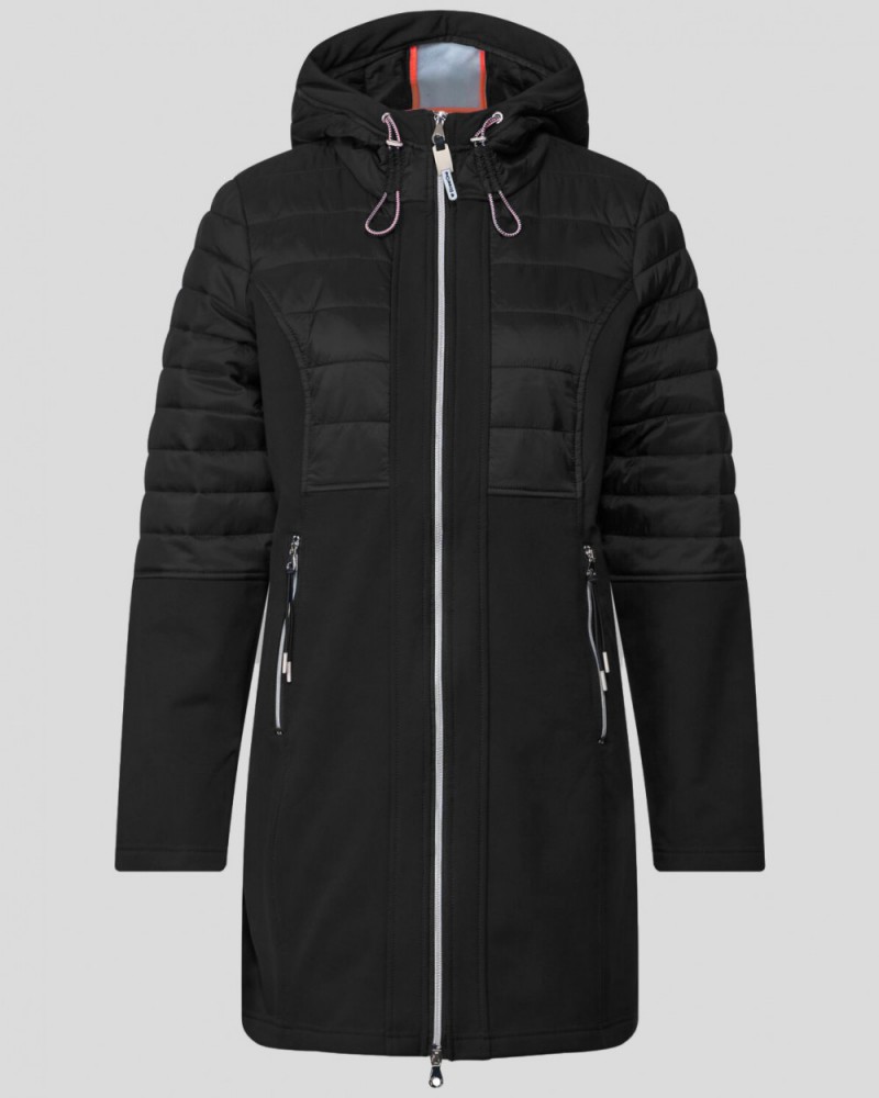 Dámska softshellová bunda od CECIL v cool mixe materiálov s prešívanými detailmi je skvelá zábava vďaka mnohým praktickým detailom.