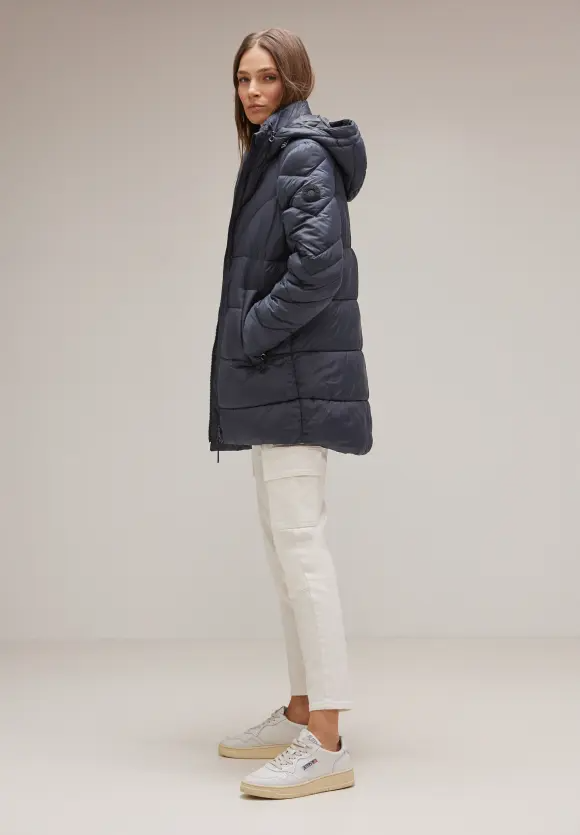 Teplo a moderný vzhľad! Dámska prešívaná bunda Street One s kapucňou, zipsom a uzamykateľnými vreckami upúta pozornosť. Rôzne prešívanie zaisťuje moderný vzhľad. Jednofarebná bunda vás udrží v teple pri nízkych teplotách a ochráni váš krk a chrbát.