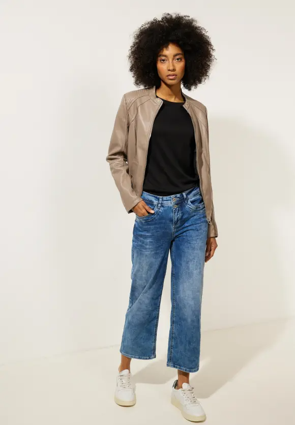 Malé detaily! Krátka dámska bunda Street One s malým stojačikom, zipsom, bočnými vreckami a štýlovými detailmi na ramene ponúka množstvo kombinácií pre moderný vzhľad. Chladný kožený vzhľad z nich robí nevyhnutnosť v šatníku. Táto dámska bunda sa dá skvele skombinovať so šatami a sukňami a dodá vášmu outfitu trendy nádych.