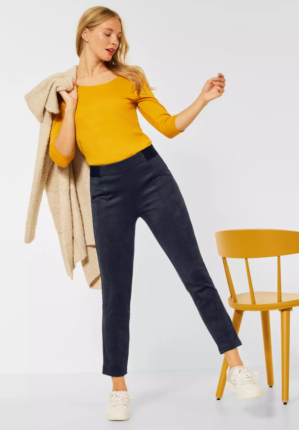 Nevyhnutná vec na jeseň! Tenké nohavice v štýle Hope od Street One zaujmú svojim chladným velúrovým vzhľadom v jednoduchej farbe. Vďaka vysokému pásu a štíhlym nohám stavia postavu na výslnie. Sedí veľmi pohodlne bez zapínania na gumu.