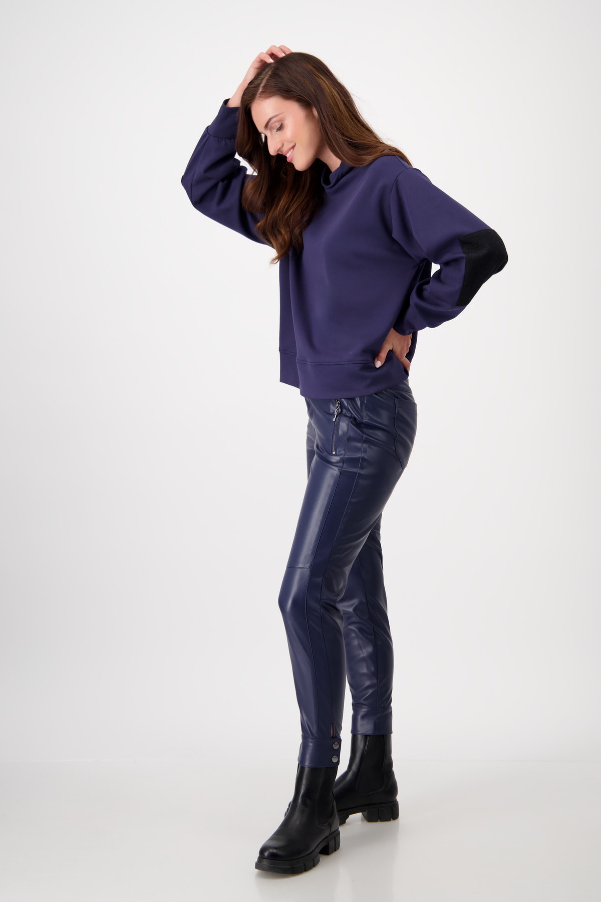 Elastická mikina ponúka mäkký pocit a na rukávoch má veľké, trblietavé nášivky.
