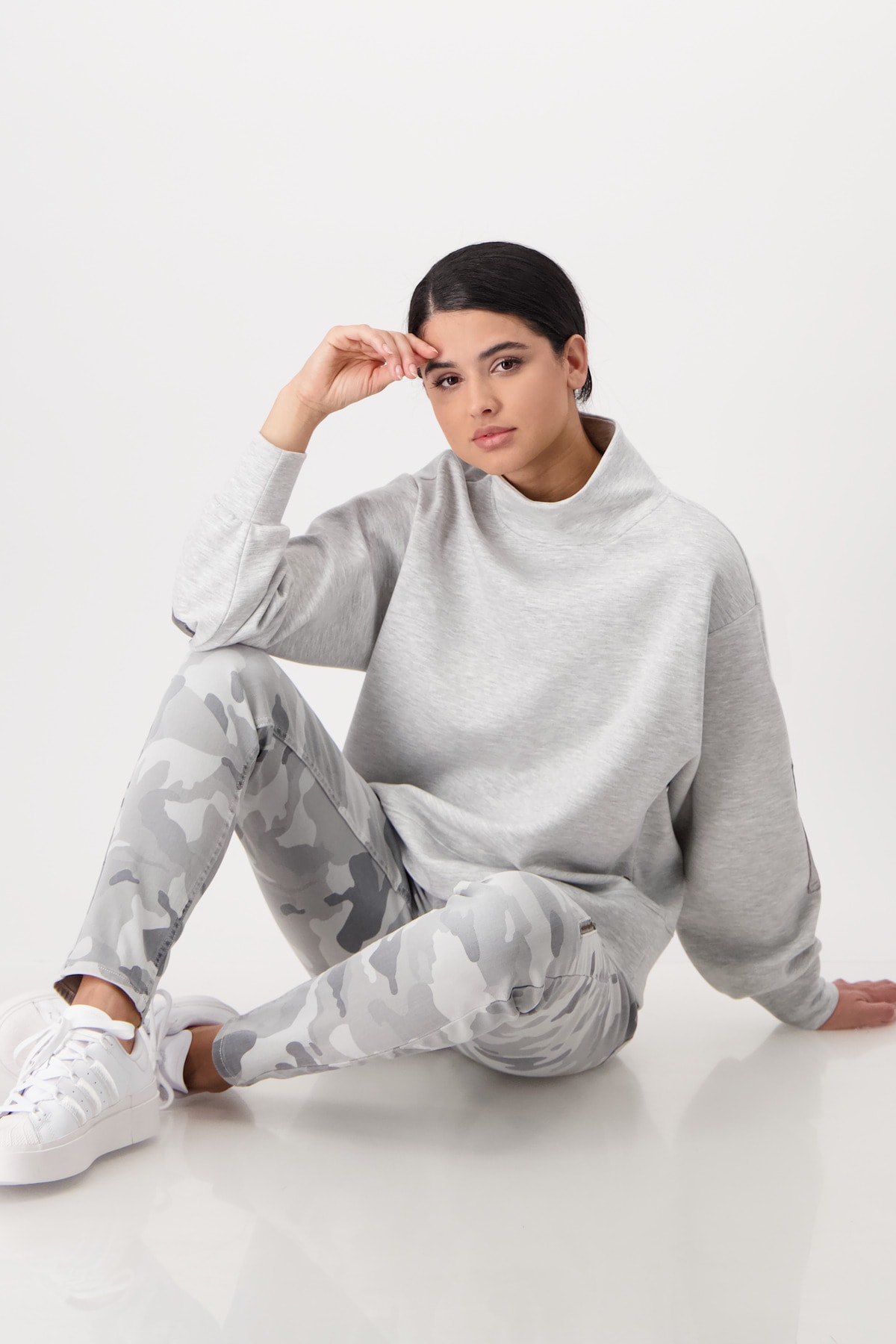 Elastická mikina ponúka mäkký pocit a na rukávoch má veľké, trblietavé nášivky.