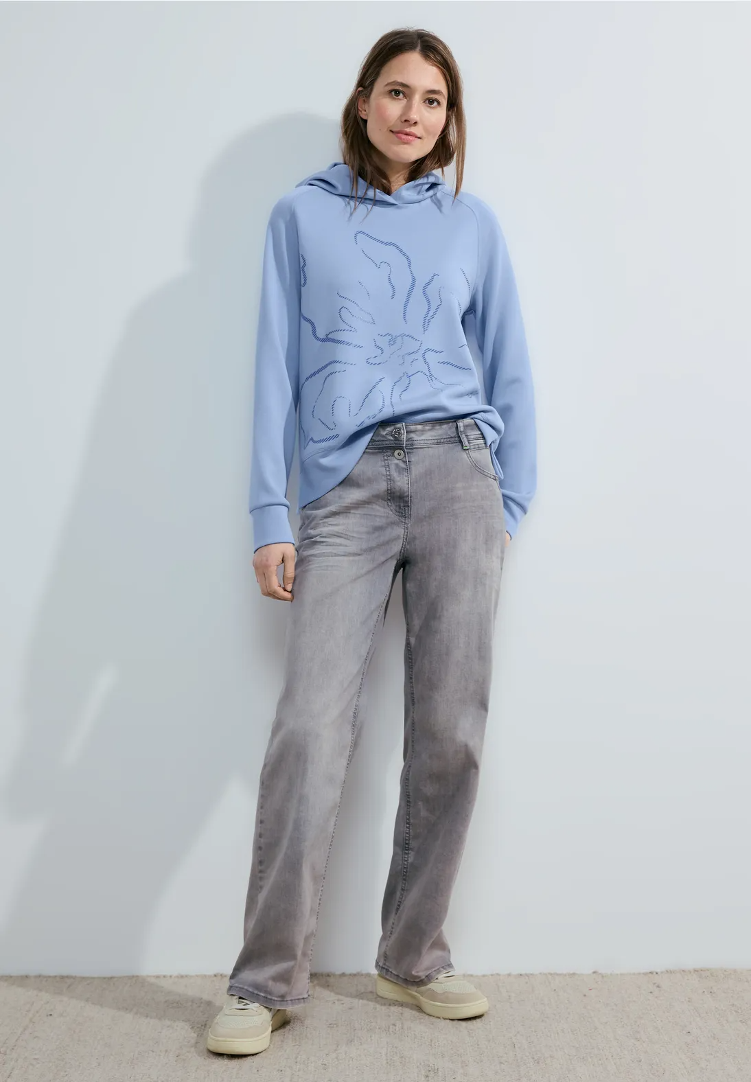 Mikina od CECIL je športový dámsky sveter s kapucňou, kvetinovým vzorom vpredu a širokými manžetami.