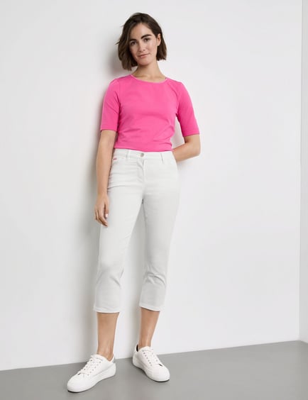 Šikovný, pútavý look na leto! Naše džínsy SOL꞉INE BEST4ME High Light s 3/4 dĺžkou nohavíc sú ideálne pre jednoduché, no štýlové outfity počas teplých dní. Super pohodlný strih a horizontálna strečová tkanina jemne obopína telo. Či už ich doladíte k tričku, blúzke alebo topu, budú sa hodiť ku všetkému.