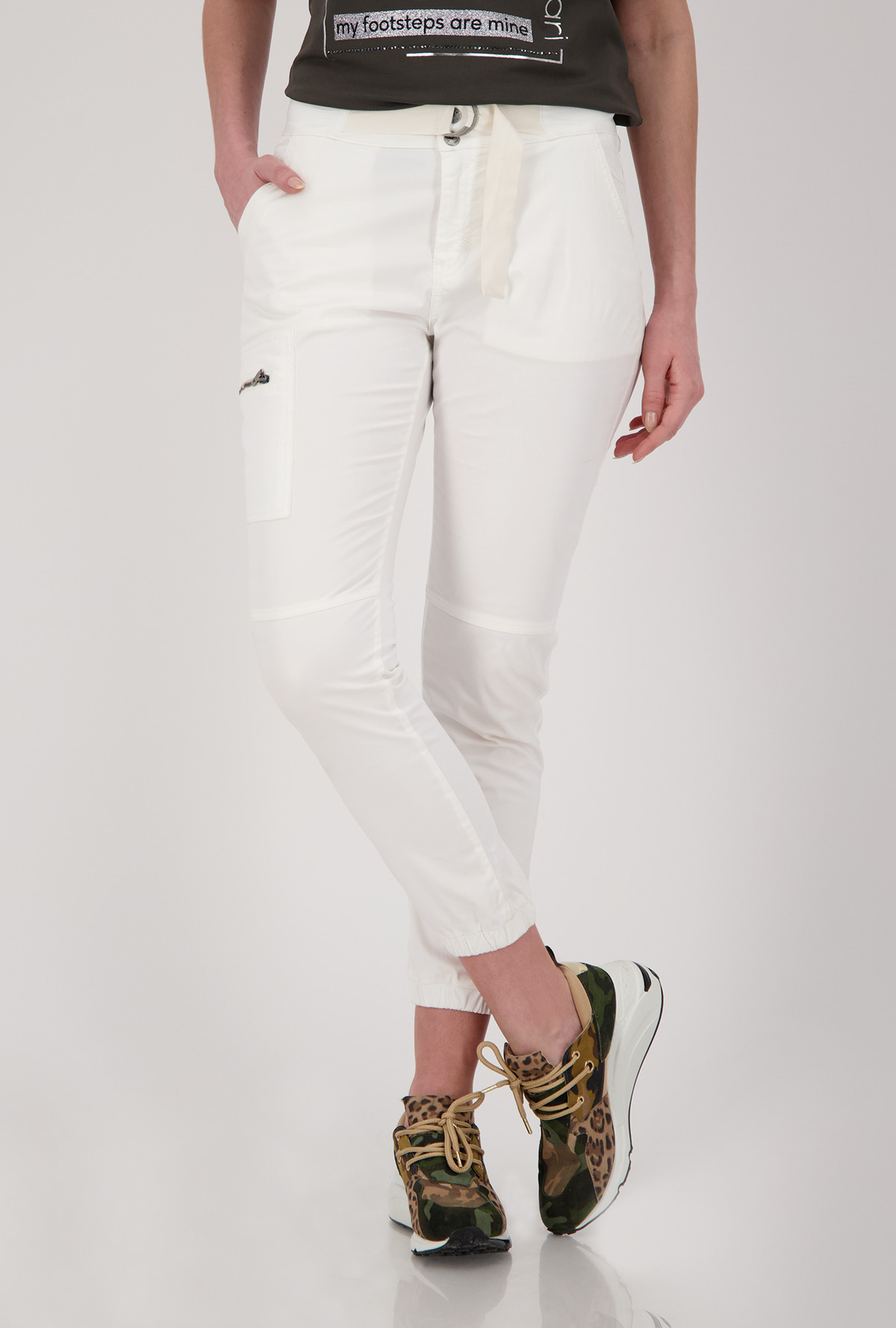 Kvôli jednoduchosti týchto nohavíc si elastické patenty na koncoch nohavíc prídu na svoje. Kvalitná bavlna a strečový podiel sľubujú pohodlné nosenie, zatiaľ čo priečne deliace švy vo výške kolien a opasok s dvoma patentkami a široká grosgrainová stuha s polkruhovými sponami zaisťujú dokonalé zakončenie. Vytvorte skvelý vzhľad!