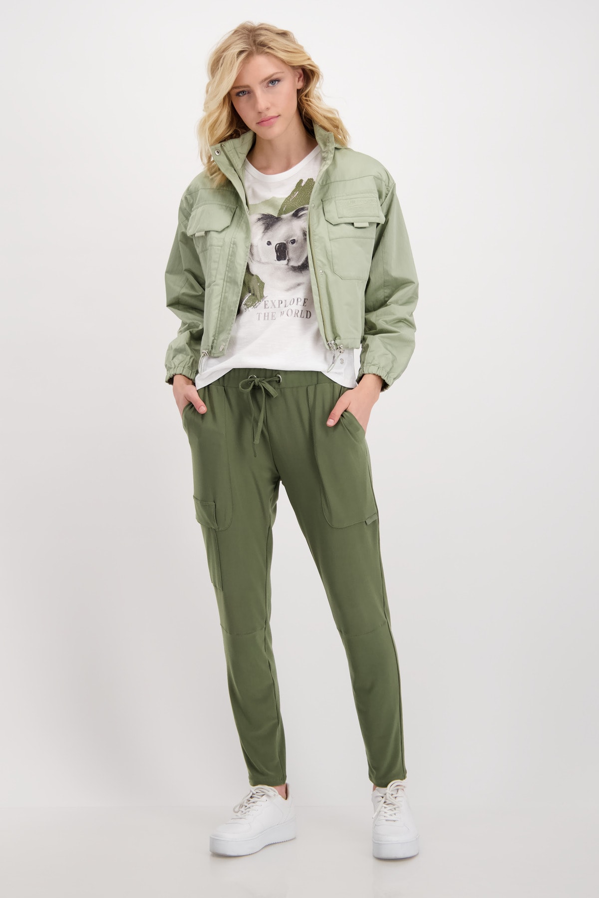 Ušľachtilé trendové nohavice: elastické nohavice jogger v nákladnom štýle od monari! Jersey model pružnej kvality. Ležérny strih s normálnou výškou pása a elastickým pásom s páskou na viazanie. Pripevnené k boku kolena: klasické vrecko s klapkou v štýle nákladu. Pripnuté vrecká vpredu a falošné posledné vrecká na zadku dotvárajú dizajn nohavíc. Ideálne pre trendy neformálny vzhľad.