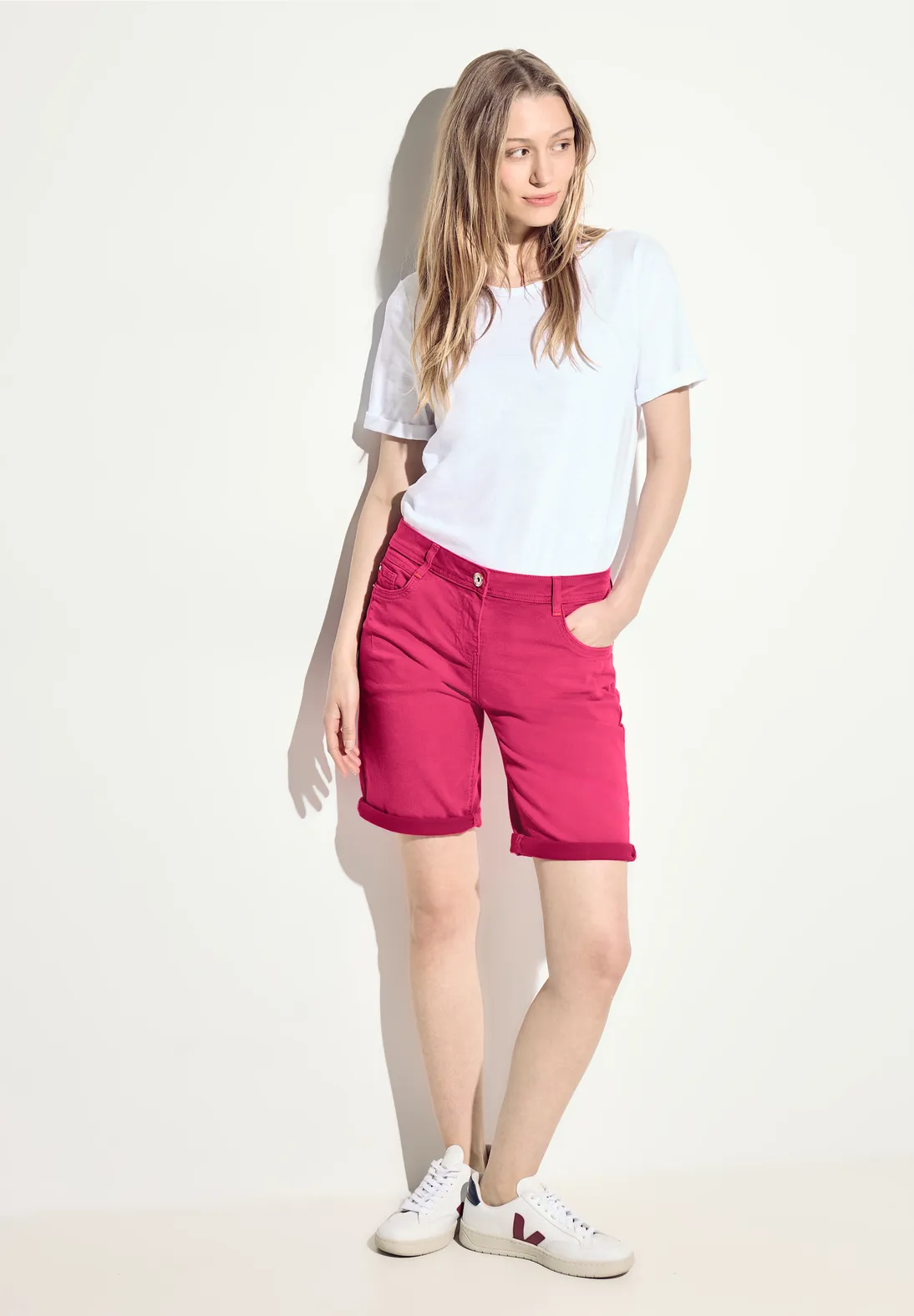 Dámske džínsové šortky v štýle Scarlett od CECIL ponúkajú uvoľnený vzhľad s ležérnym strihom a stredne vysokým pásom.