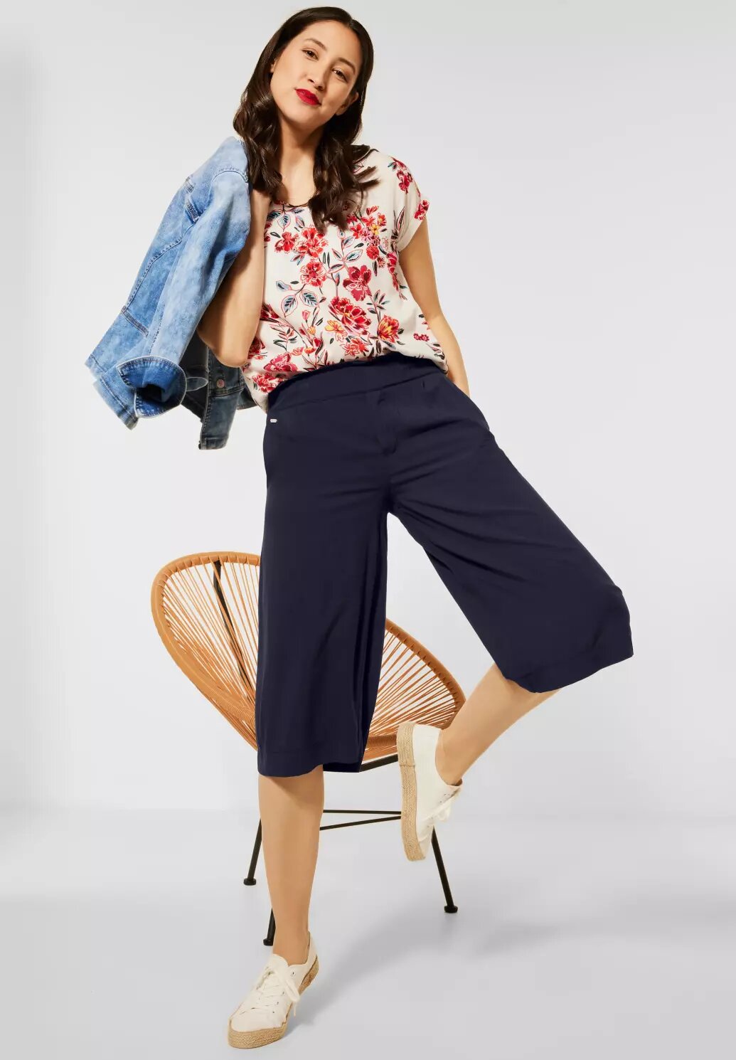 Voľné nohavice Street One v jemnej viskóze a jednofarebnej farbe. Vďaka širokému strihu a vysokému pásu je ženský a mimoriadne pohodlný. Trendový pás z papierovej tašky a bočné vrecká dopĺňajú chladný strih. V 3/4 dĺžke sú nohavice obľúbeným letným spoločníkom!
