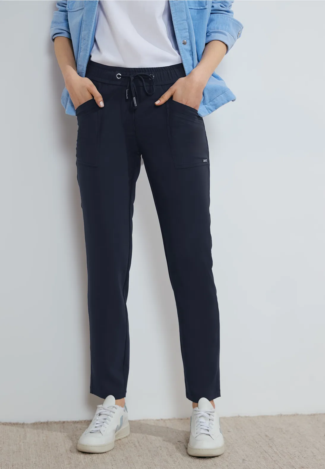 Ležérne nohavice v štýle Tracey od CECIL sú všestranné nohavice na každodenné nosenie. Vďaka praktickému pásu na šnúrku ponúka vysoký komfort a flexibilitu. Bočné vrecká a zadné vrecká, ako aj strih stredného pásu so štíhlymi nohavicami dodávajú nohaviciam moderný vzhľad. Ideálny cestovný doplnok na cesty