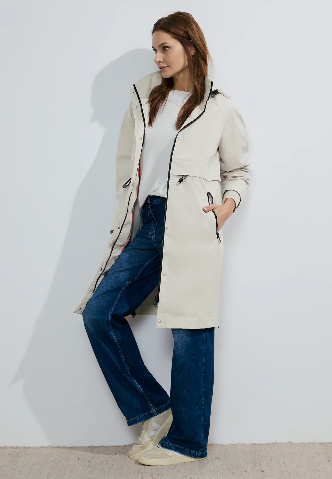 Trenčkot od CECIL je všestranným spoločníkom pre ženy v prechodnom období. S odnímateľnou kapucňou a uzatvárateľnými vreckami ponúka praktické detaily. Sťahovacia šnúrka umožňuje zvýrazniť pás a bočné zipsy na leme dodávajú kabátu moderný nádych.