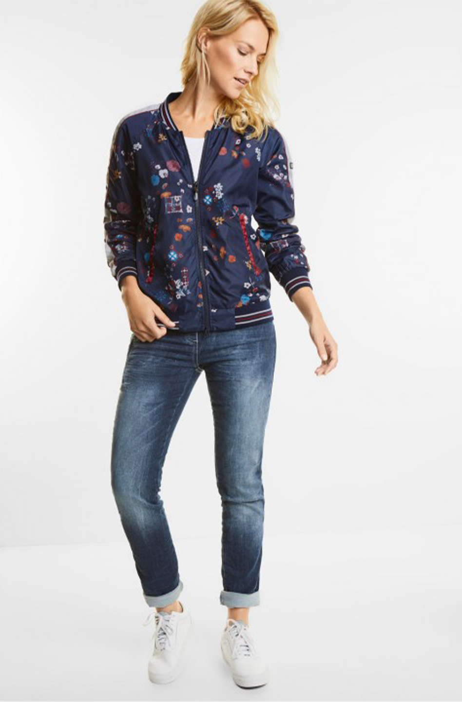 Prechodná bundička s 3D štruktúrou, lem rukávu je zdobený farebne kontrastným elastickým lemom.