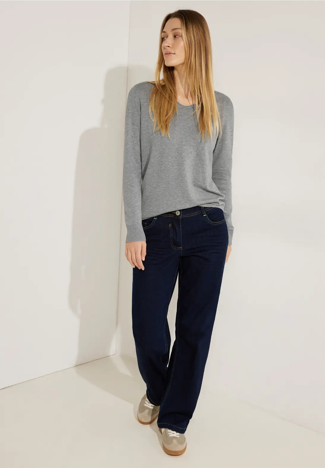 Tento dámsky pletený sveter od CECIL z jemného úpletu s dlhými rukávmi a okrúhlym výstrihom do V sa dá na mnoho spôsobov kombinovať.