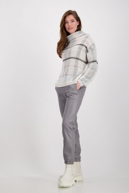Sveter je príjemný na dotyk a je z celoplošnej žakárovej látky s károvaným vzorom.