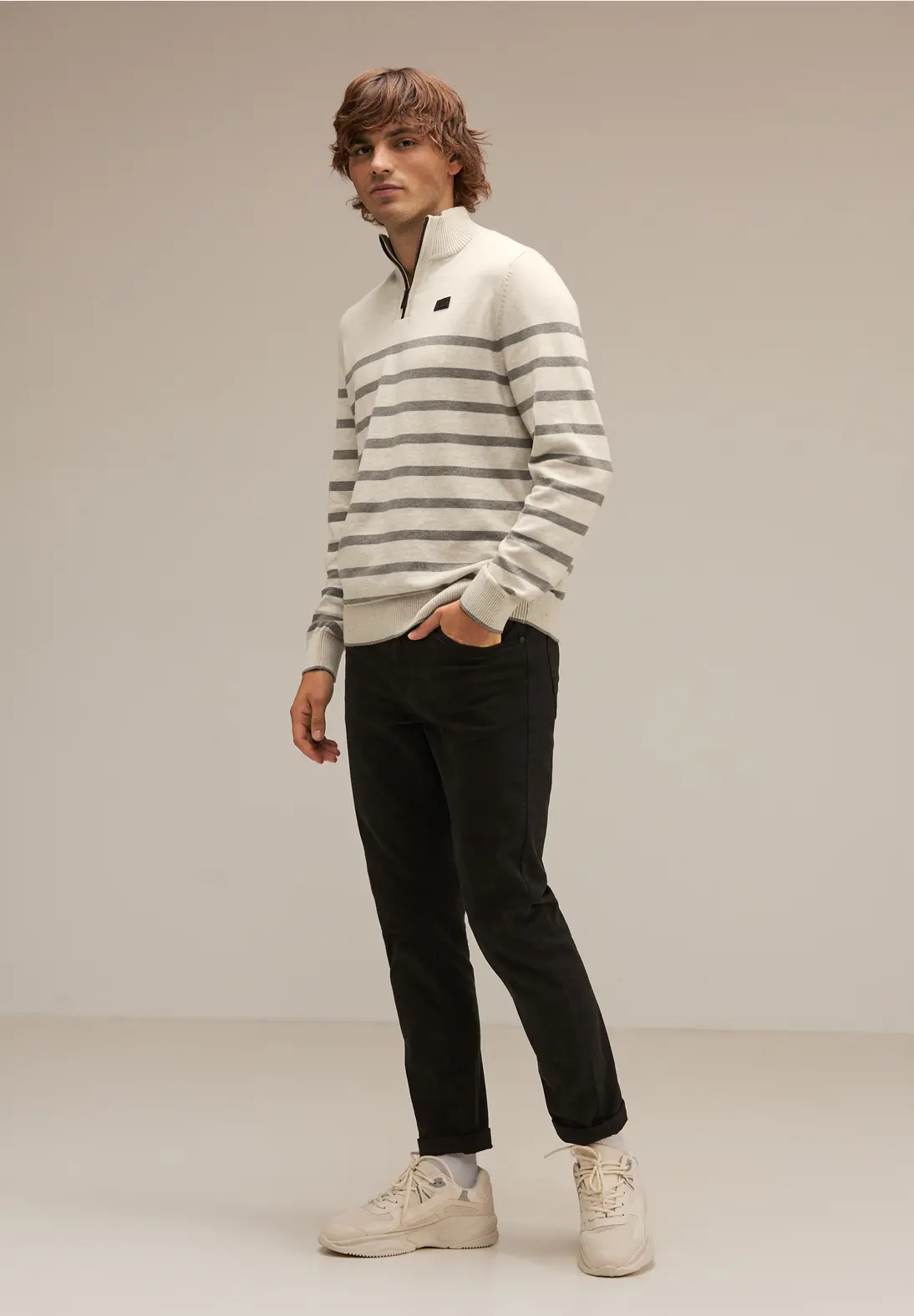 Pánsky trenažér Street One MEN s výrazným stojačikom, praktickým zipsom a pútavou nášivkou na hrudi v atraktívnom pruhovanom vzhľade je dokonalou voľbou pre mužný vzhľad s osobitosťou.
