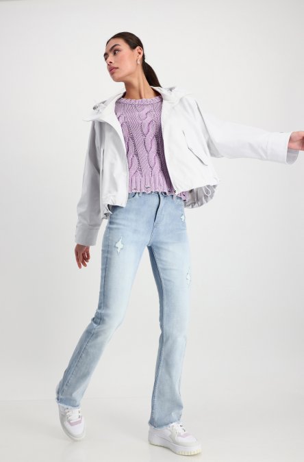 Pohodlný sveter zo 100% bavlny zaujme módnym káblovým vzorom a rebrovanou štruktúrou.