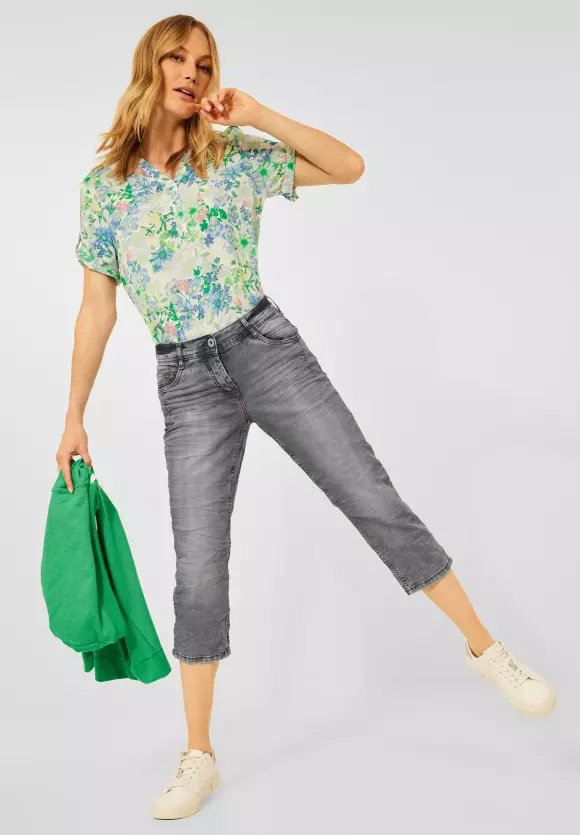 milujem denim! Dámske džínsy voľného strihu v štýle Scarlett značky CECIL sú v letnej 3/4 dĺžke. V sivom praní so zipsom a gombíkom je džínsovina v štýle 4 vreciek všestranným módnym favoritom na teplejšie dni. Pohodlne sedí v strednom páse a štíhle nohy vykúzlia skvelé nohy.