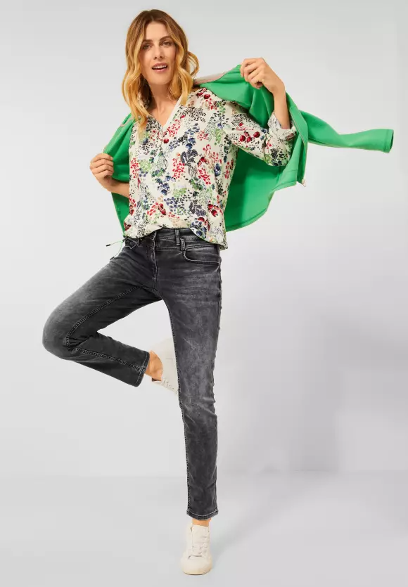 Celý čas miláčik! Dámske džínsy voľného strihu v štýle Scarlett značky CECIL. Kombinovaná hviezda v strednom páse a so štíhlymi nohami. Tmavé pranie je mierne použité. 5-vreckový štýl s malým vreckom na zips s kontrastnými detailmi upúta pozornosť.