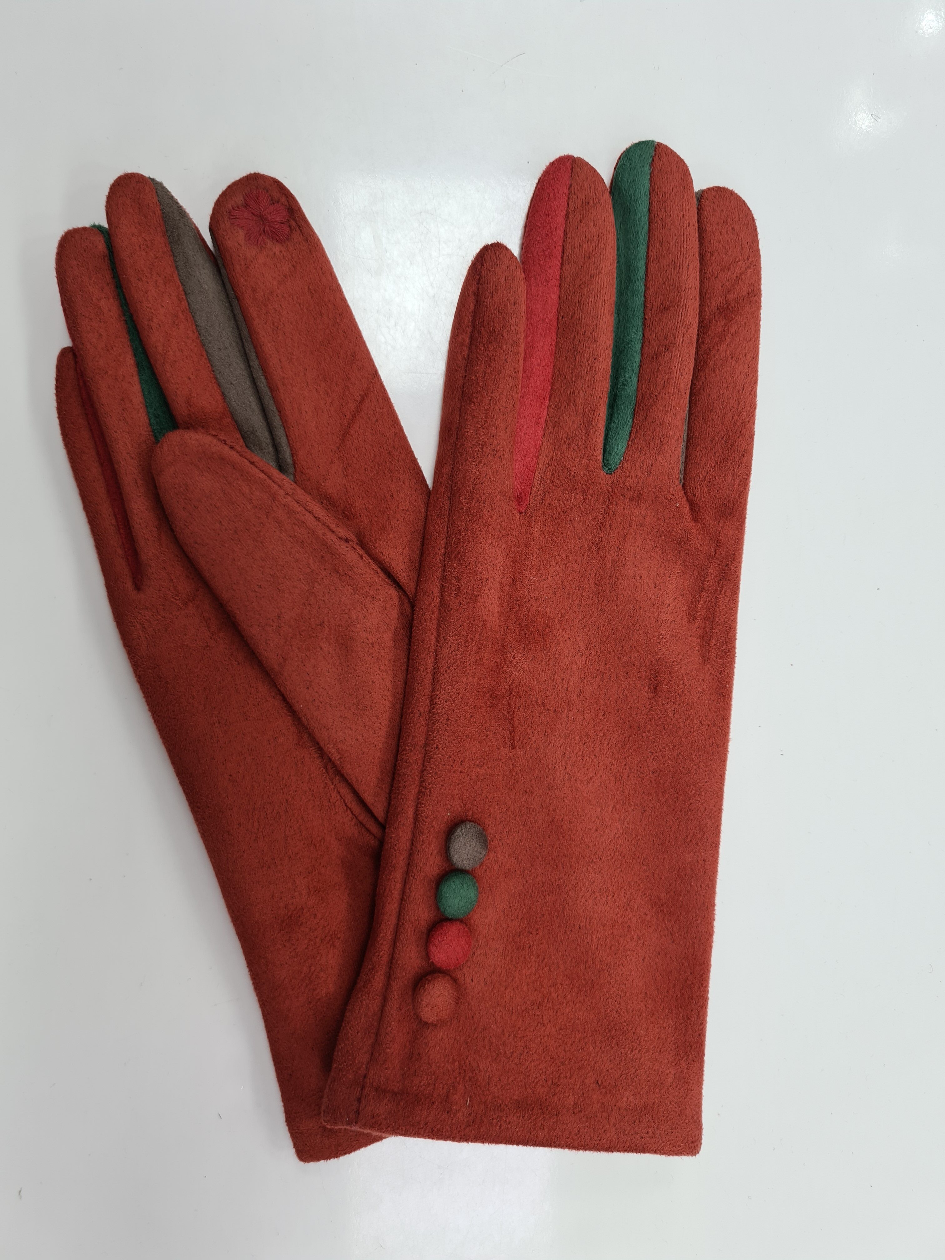 Rukavice látkové červené s gombíkmi