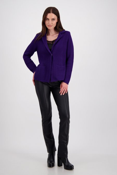 Vizuálne zaboduje kardigan v štýle blejzru s voštinovým vzorom.