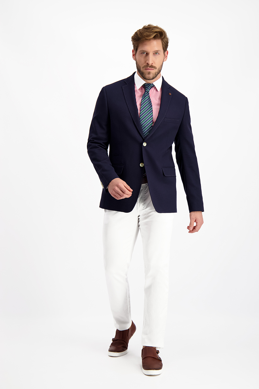 Pánske sako v nadčasovom námorníckom modrom odtieni.