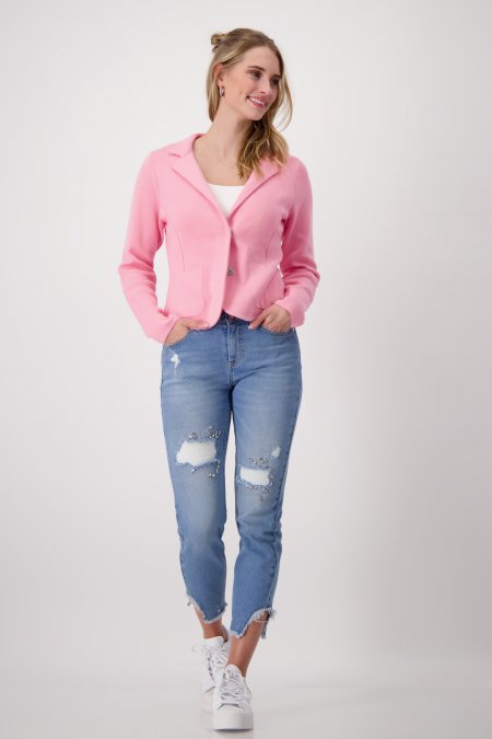 Štýlový pletený blejzer vyrobený zo 100% bavlny pre moderný vzhľad. Mierne prispôsobené a vybavené chlopňovým golierom.