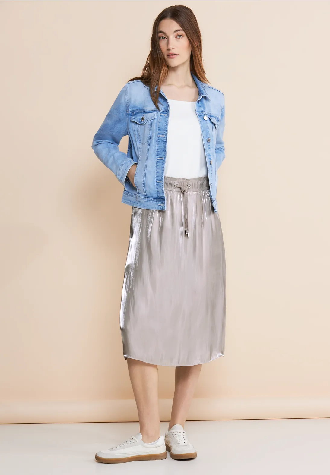 Lesklá sukňa Street One je ideálnym kúskom oblečenia na párty a akcie. Vďaka elastickému pásu a šnúrke je nielen pohodlná, ale tiež perfektne sedí. Jemná zvrásnená kvalita s viskózovou podšívkou dodáva sukni lesklý vzhľad a zaisťuje jej pohodlné nosenie.