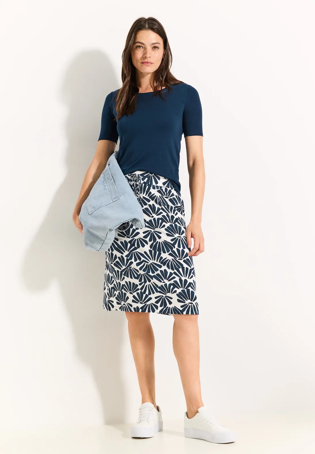 Dámska midi sukňa s potlačou od CECIL je džersejová sukňa s moderným mušľovým vzorom.