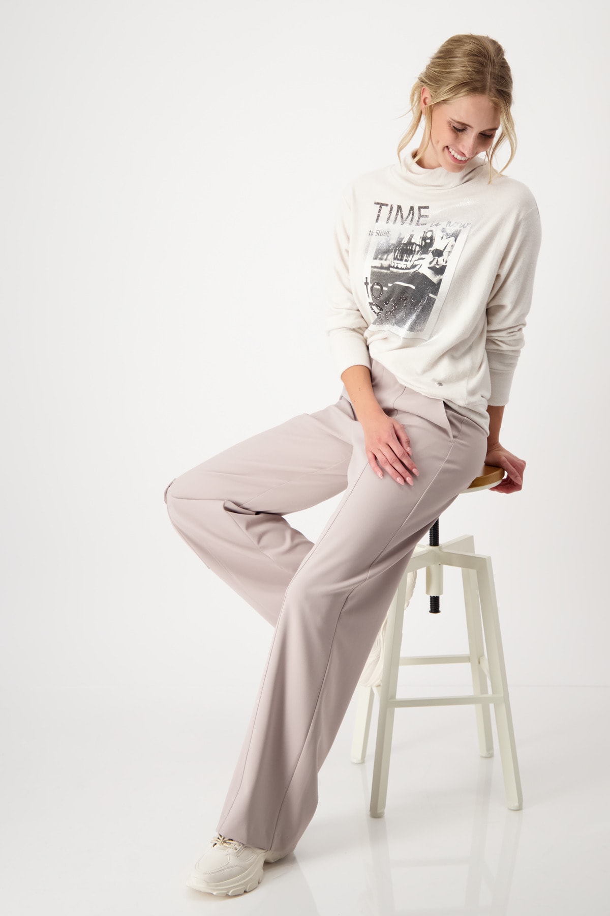 Táto útulná mikina má super mäkký pocit a trblietavú fotografickú potlač s kamienkovým nápisom.