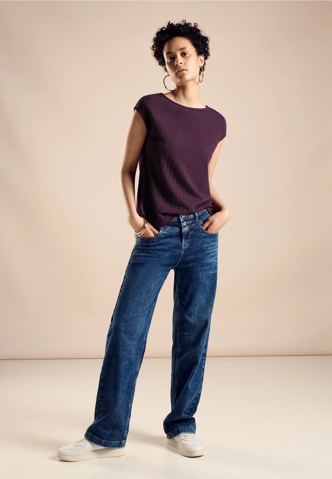 Dámske štruktúrované tričko Street One je vzdušné letné tričko s lichotivým lodičkovým výstrihom, ktorý dodáva nádych elegancie.