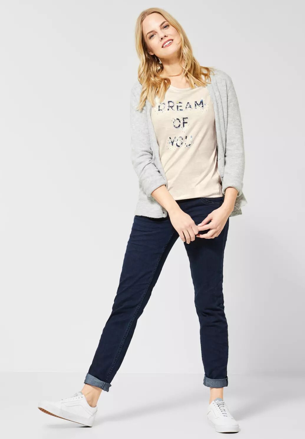 Tričko s dlhým rukávom s potlačou na prednej strane zvýrazňujú trblietavé nity.