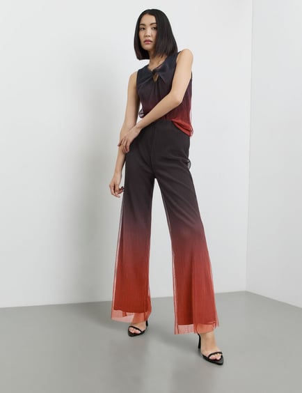Dodajte svojmu šatníku elegantný nádych s týmto blúzkovým topom! Jemná plisovaná látka s nádherným odstupňovaním farieb robí z tohto kúsku naozajstný pútač, zatiaľ čo sofistikovaný viazaný dizajn pri výstrihu odhaľuje veľkú pozornosť venovanú detailom. Mäkká džersejová podšívka umožňuje pohodlné nosenie a dodáva mu nepriehľadný povrch. Dajte svojmu vzhľadu istý je ne sais quoi!