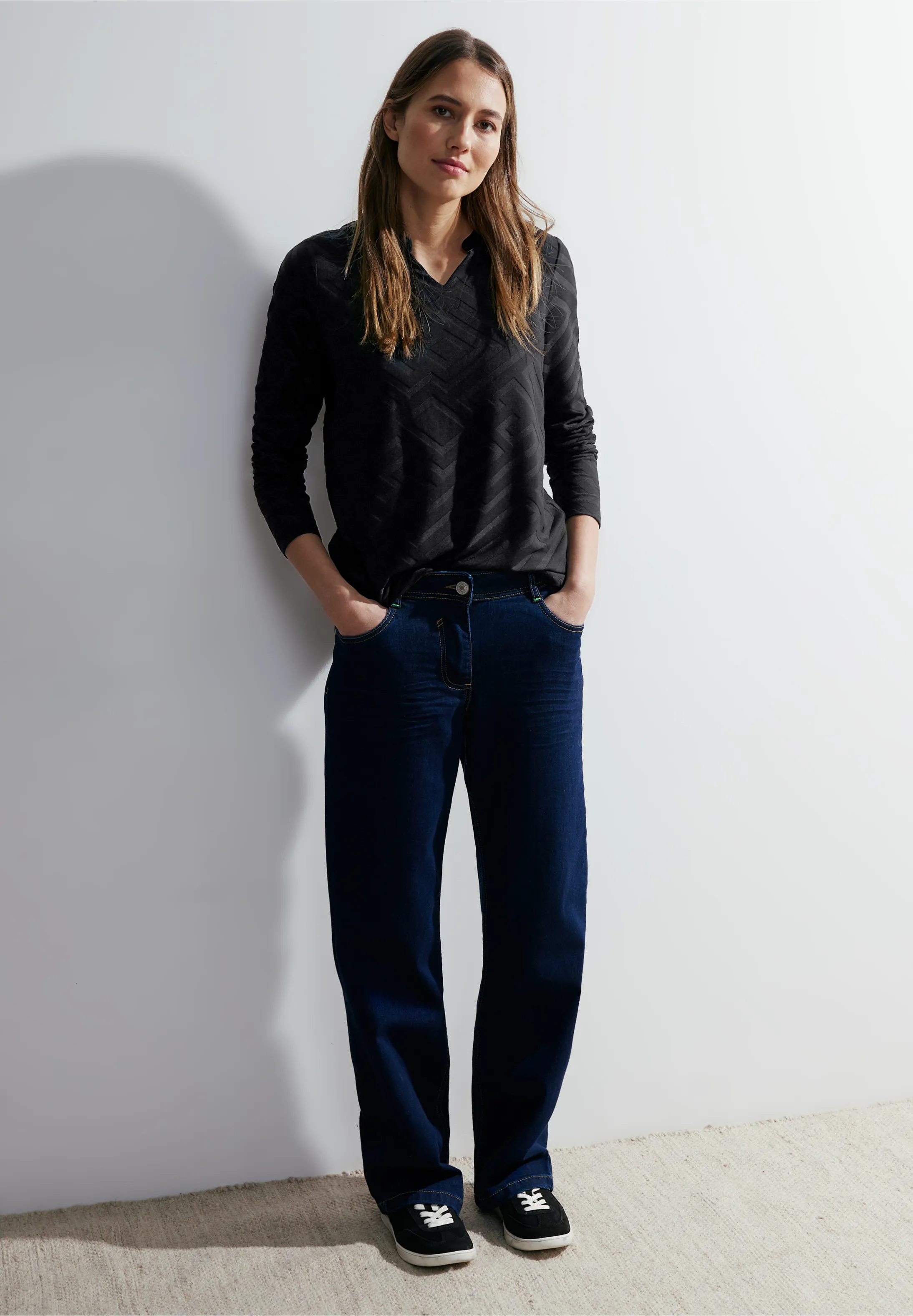 Štýlový šik na každú príležitosť! Košeľa CECIL s dlhým rukávom a rozparkom z mäkkej zmesi viskózy je kvalitná dámska košeľa so žakárovým vzorom, ktorý jej dodáva jemný 3D vzhľad. Táto košeľa je nielen príjemná na nosenie, ale aj skutočne upúta. Či už si ju vyberiete na špeciálne príležitosti alebo každodenné nosenie, táto košeľa dodá vášmu outfitu elegantný nádych, ktorý bude vždy dobre prijatý.