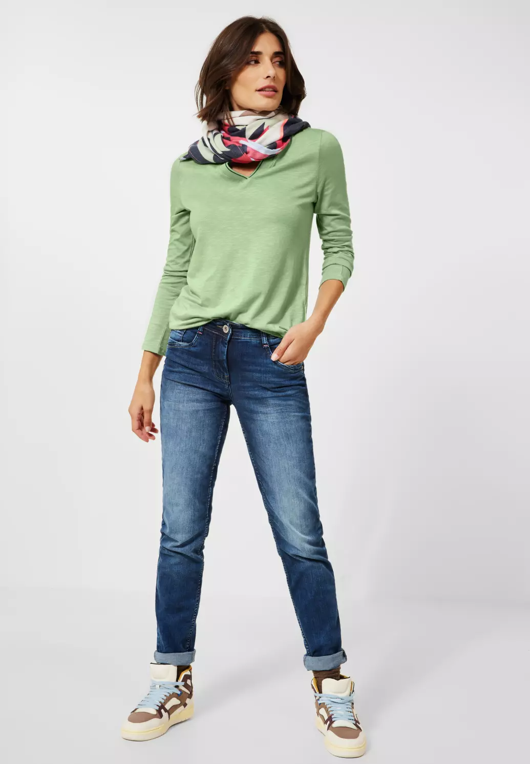 Základné miláčik! Dámska košeľa v cool tunikovom štýle značky CECIL. Jednofarebná farba sa dá kombinovať a štylizovať mnohými spôsobmi. Rozparkovaný okrúhly výstrih z rebrovaného úpletu priťahuje pozornosť k dekoltu vďaka vysokoškolským pruhom. Elastický lem zaisťuje dokonalé padnutie a pohodlie.