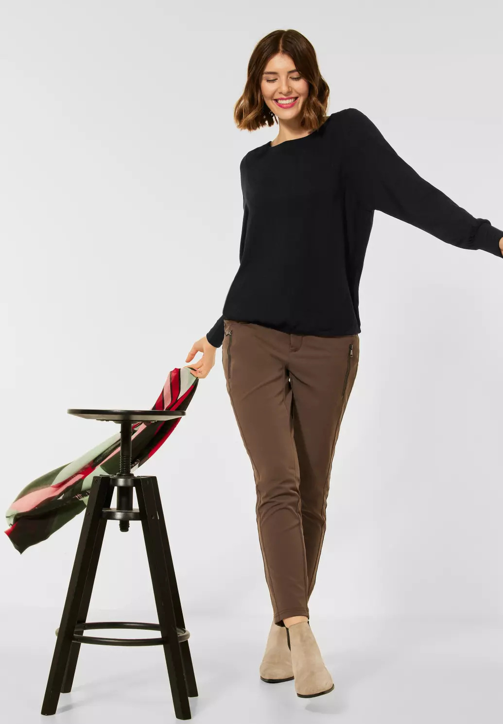 Ležérna košeľa Street One očarí príjemným materiálovým mixom jemnej viskózy. Guma na leme a dolmanové rukávy so širokými manžetami dodávajú skvelé akcenty. V jednofarebnej farbe sa dá košeľa na mnoho spôsobov kombinovať s klasickým okrúhlym výstrihom.