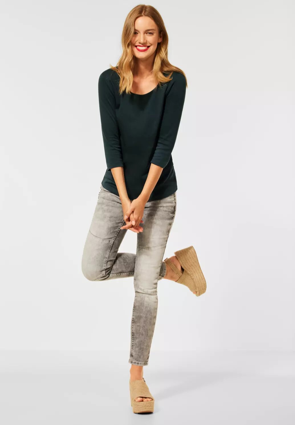 Základné tričko Street One je možné donekonečna kombinovať s jednoduchým jednoduchým dizajnom a nosiť ho znova a znova! Vzhľad dotvárajú 3/4 rukávy, ktoré pohodlne sedia. Predná strana je podšitá extra podšívkou, ktorá je na dotyk super mäkká a zaručuje vysoký komfort nosenia. Jednoducho ju skombinujte s obľúbenou riflovinou, nahoďte kardigán a ako vizuálny melír pridajte šál so vzorom – neformálny vzhľad je pripravený!