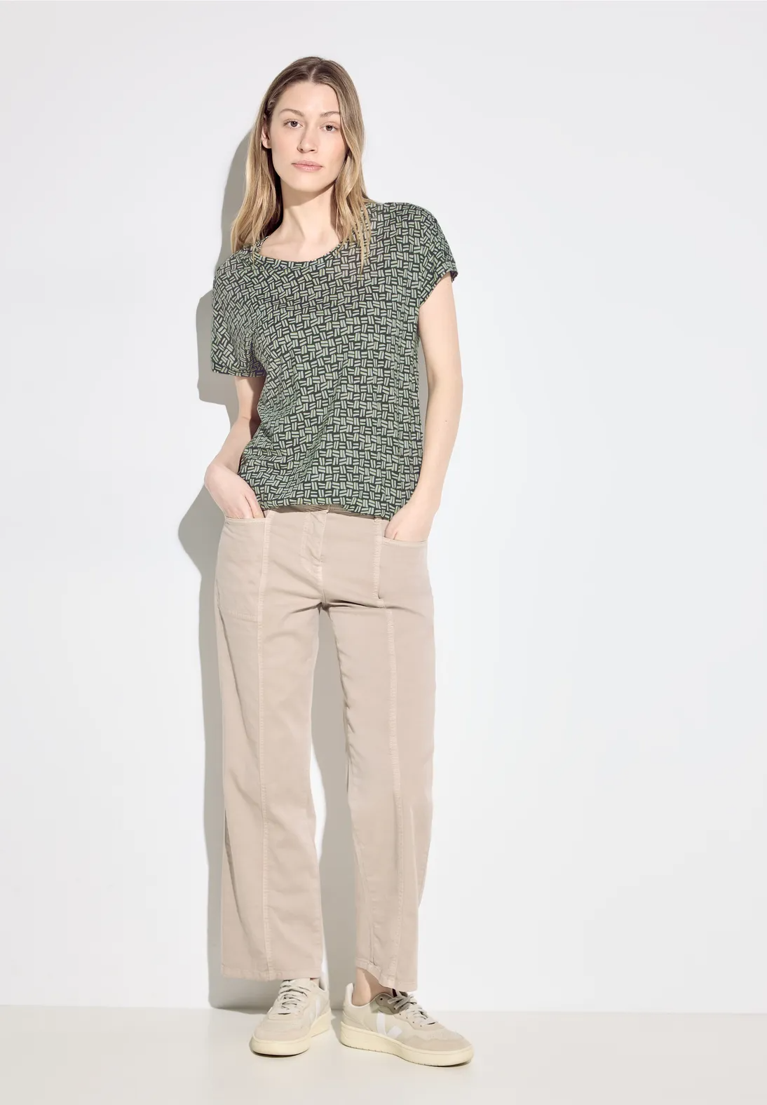 Dámska košeľa s krátkym rukávom od CECIL má trendovú mini potlač a okrúhly výstrih do V pre moderný vzhľad.