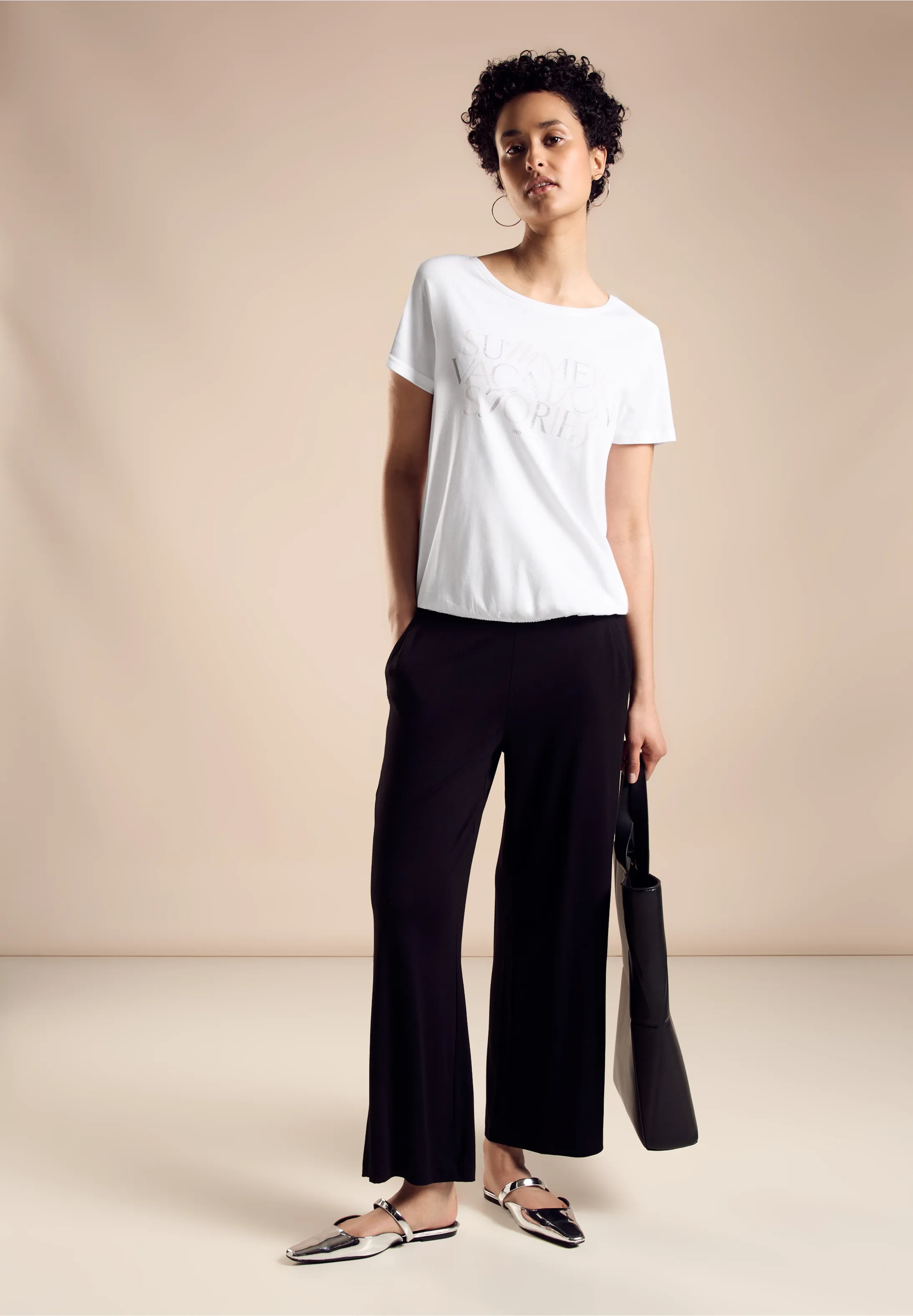 Dámske tričko Wording od Street One je ležérne tričko s krátkym rukávom, klasickým výstrihom a lichotivým elastickým pásom.
